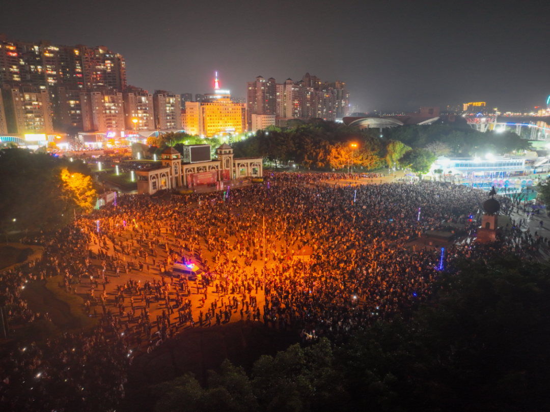 夜幕降临,华灯映江。东江两岸观景步道灯火璀璨、游人如织,流光溢彩的灯光与粼粼江水交相辉映,勾勒出醉人的城市夜景。市民、游客扶老携幼、阖家欢聚,欢声笑语在江畔此起彼伏。大家纷纷拿出手机、相机,满怀期待静候璀璨焰火绽放夜空。