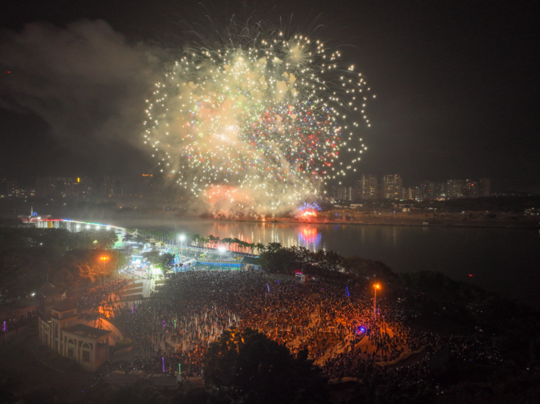 第四篇章“焰舞庆春·福满东江”作为压轴环节,高中低空焰火立体绽放,以中国红、璀璨金为主色调,节奏层层攀升,掀起“百花闹春”的喜庆高潮,传递感恩母亲河、马年安康、阖家幸福的美好祝愿。