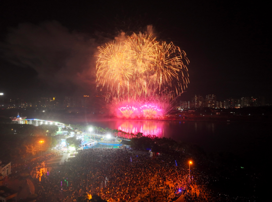 据统计,焰火秀吸引了市民、游客约11万人,其中外地游客占比34%,约3.9万人。